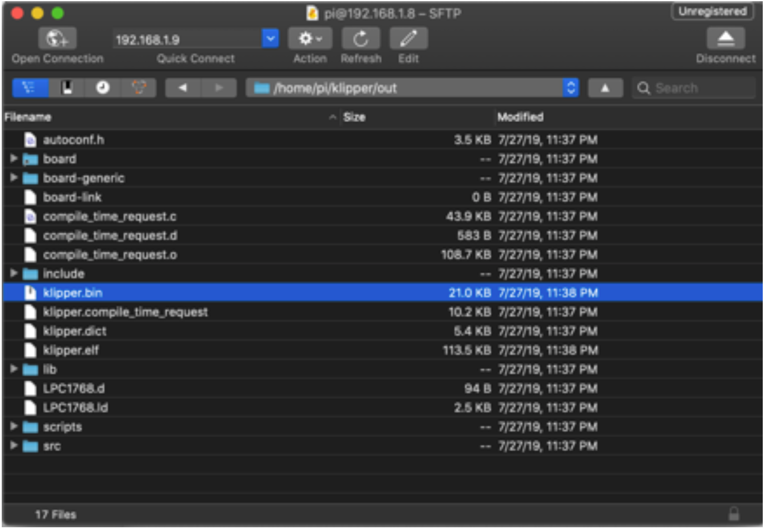 Use a tool such as cyberduck or winscp to copy the klipper.bin file off your Pi, onto your computer.