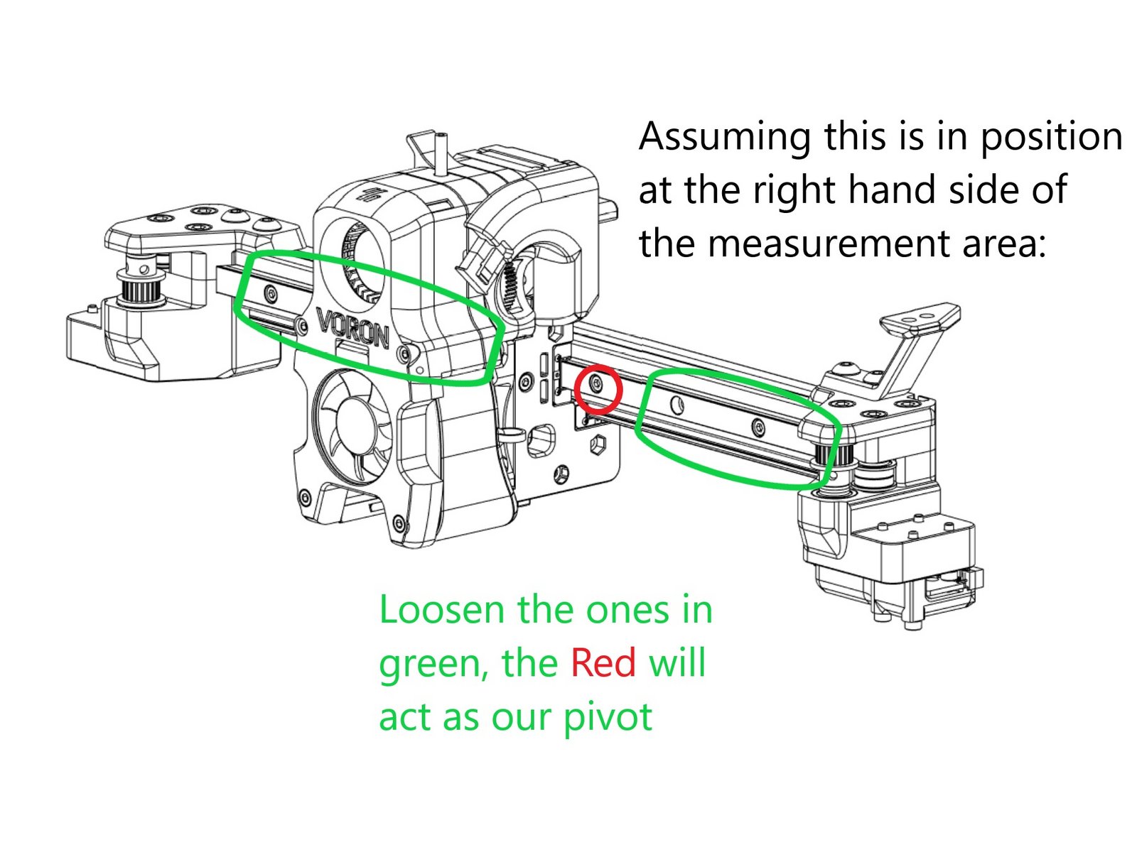 - SAFETY WARNING: Do not home with this adjuster in place! Be very careful when operating at high Y values!! If you do, it will contact well before the y switch does, and you will have bigger problems on your hands loosen all the screws securing the front rail except the one immediately to the carriage’s right, this will be our pivot for the rail adjustment.